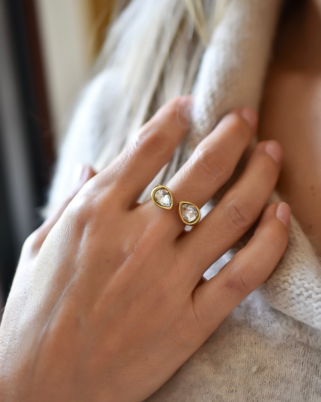 Diseño ajustable de acero inoxidable con un delicado baño de oro, con garantía de cero corrosión (NO SE OXIDA) y con 2 zirconias a los bordes.