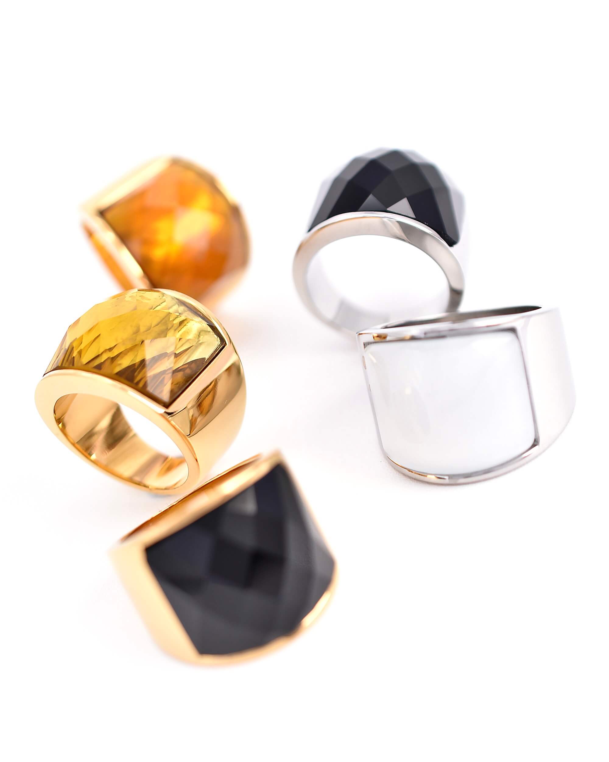Estos anillos son un top, biselados y crean destellos hermosos. Su forma y cortes los hacen únicos, de acero inoxidable.