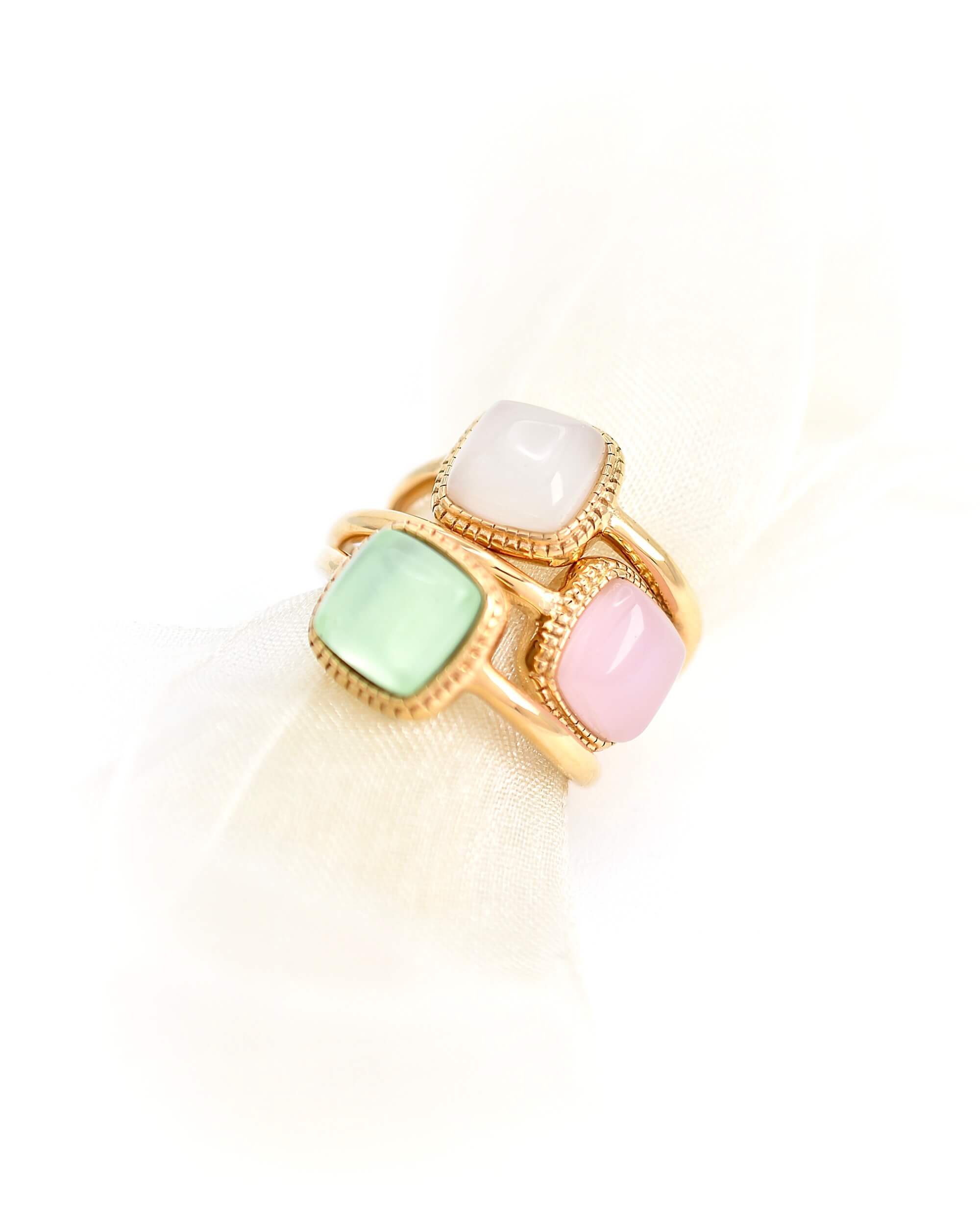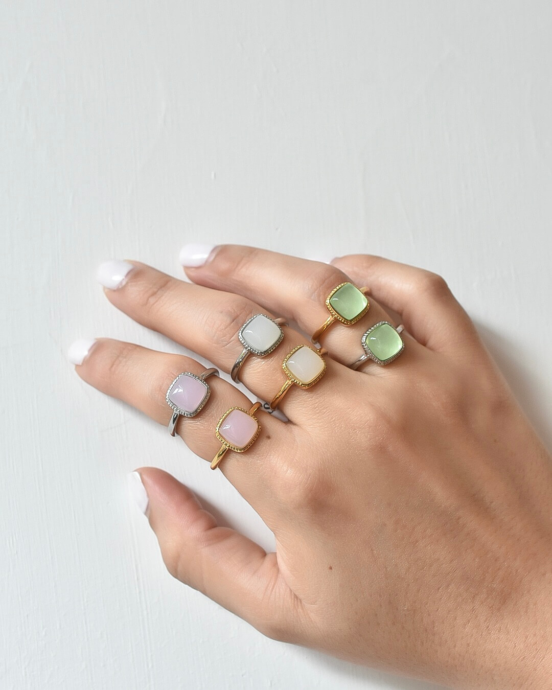El Ópalo se asocia con equilibrio, creatividad y buena energía, pero que realmente importa es que estos anillos son waterproof en acero inoxidable con baño de oro y simplemente hermosos. es una joya que lo tiene todo, Buena energía, belleza y calidad.