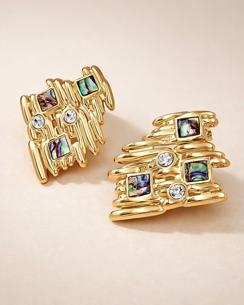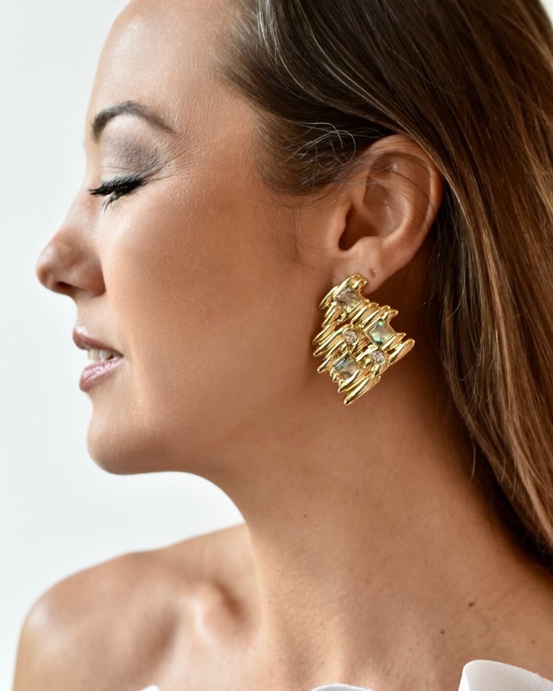 Ok querias arte? Estos aretes statement son arte puro. De acero inoxidable con zirconias y concha nácar natural.