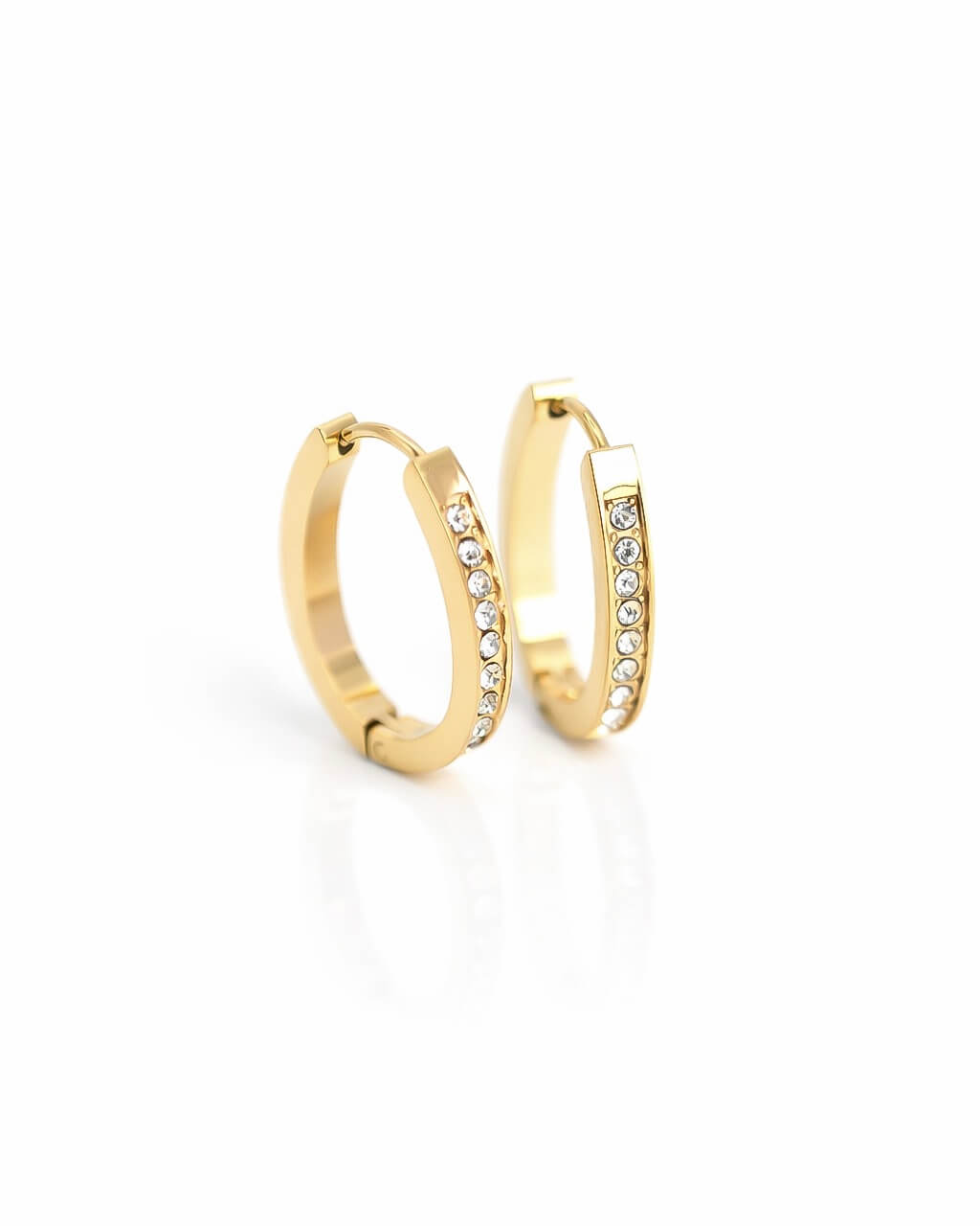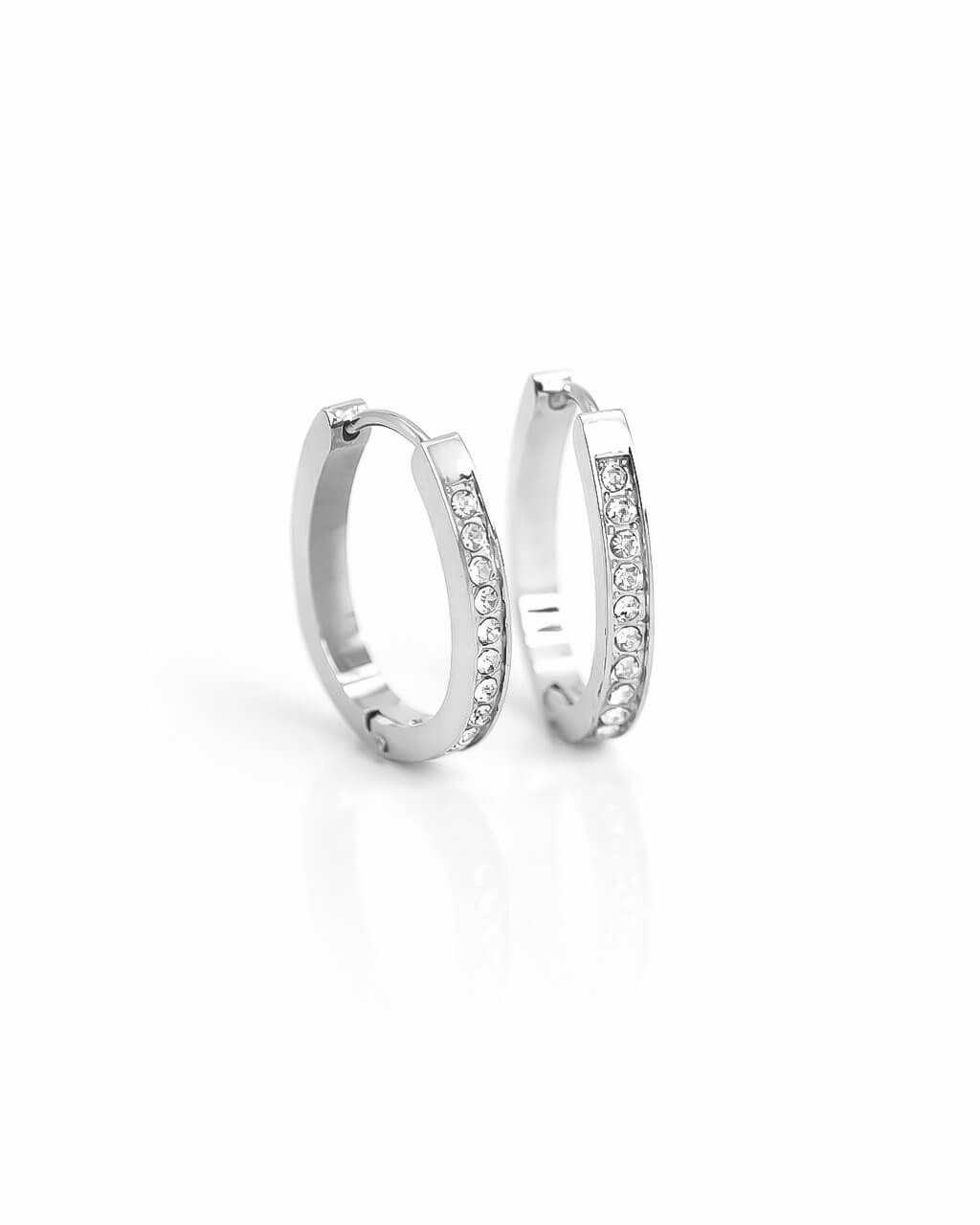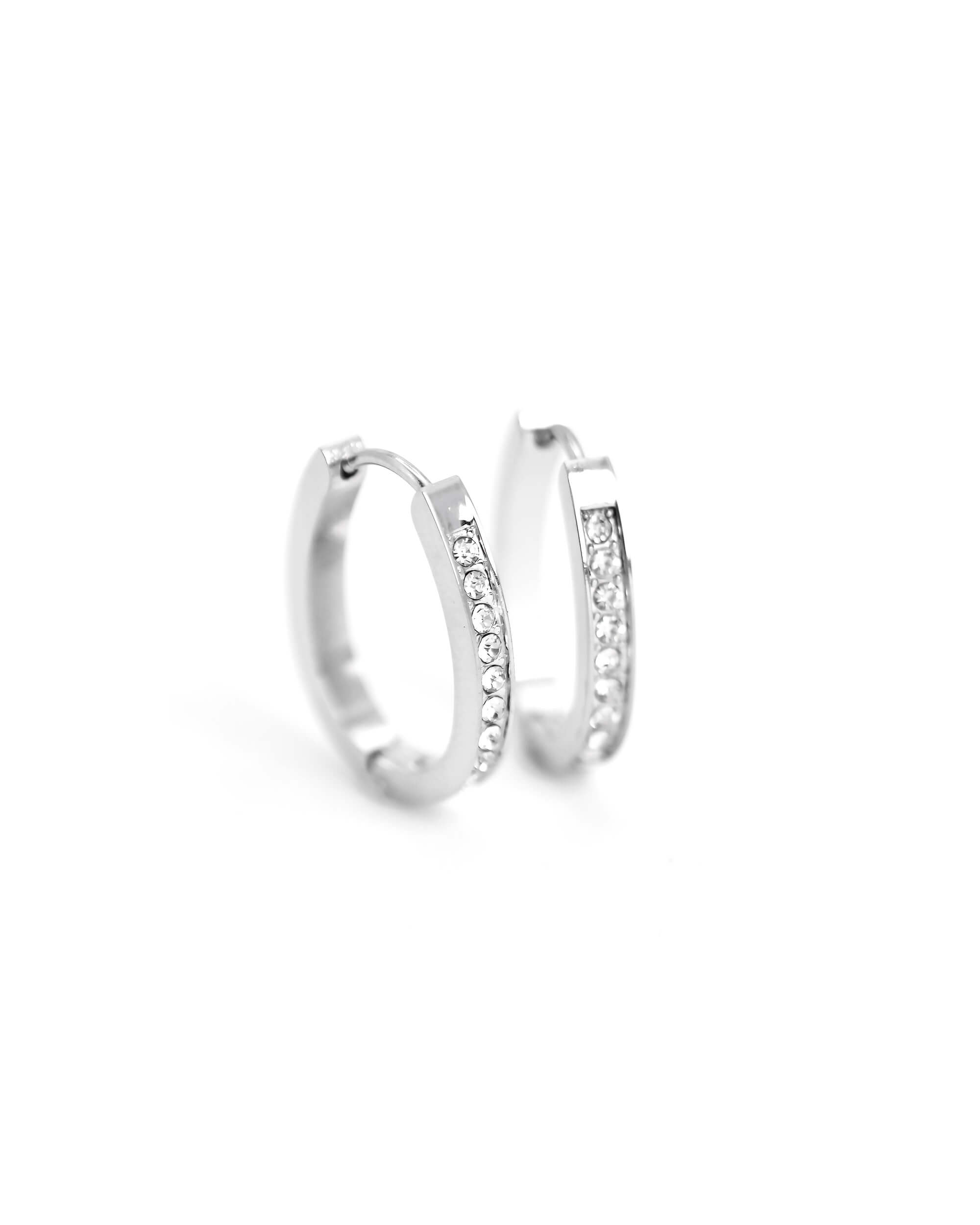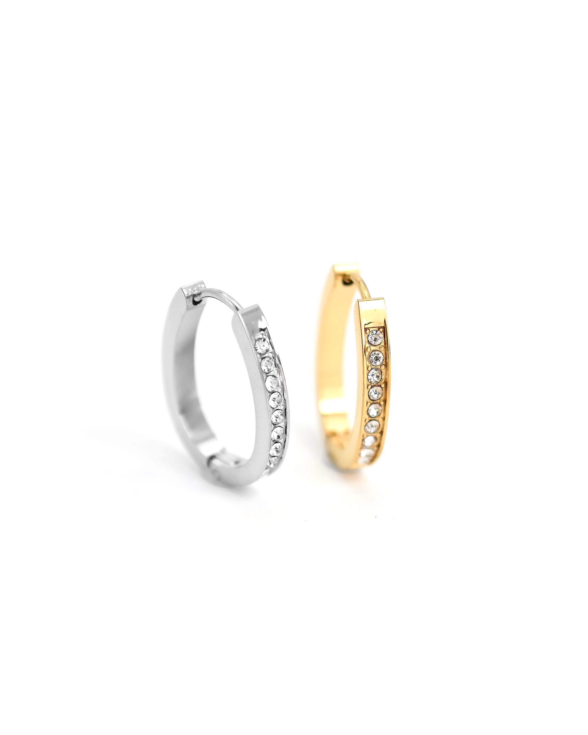 Unas argollas perfectas para el dia a dia, que te acompañen siempre sin perder el brillo, el estilo y lo chic. De acero inoxidable grado quirúrgico con zirconias incrustadas. Con broche fácil y cómodo.