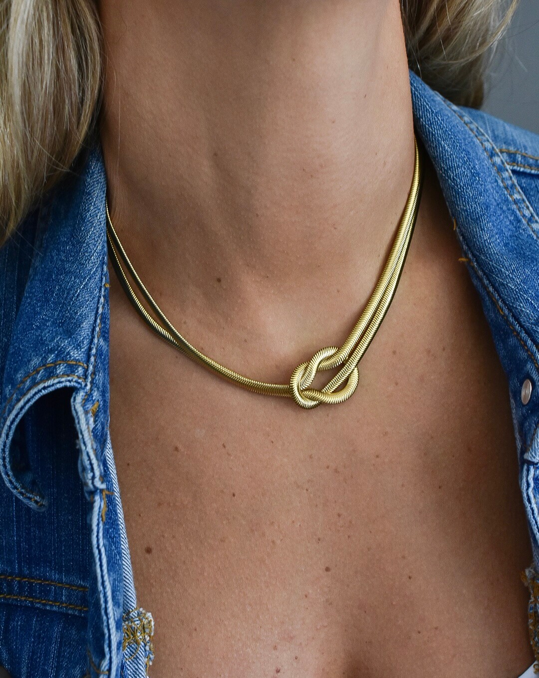 Espectacular y Fuera de serie, collar de lazo doble estilo de culebra gruesa, es de esos lazos elegantes y llenos de estilo, atemporales. De acero inoxidable.