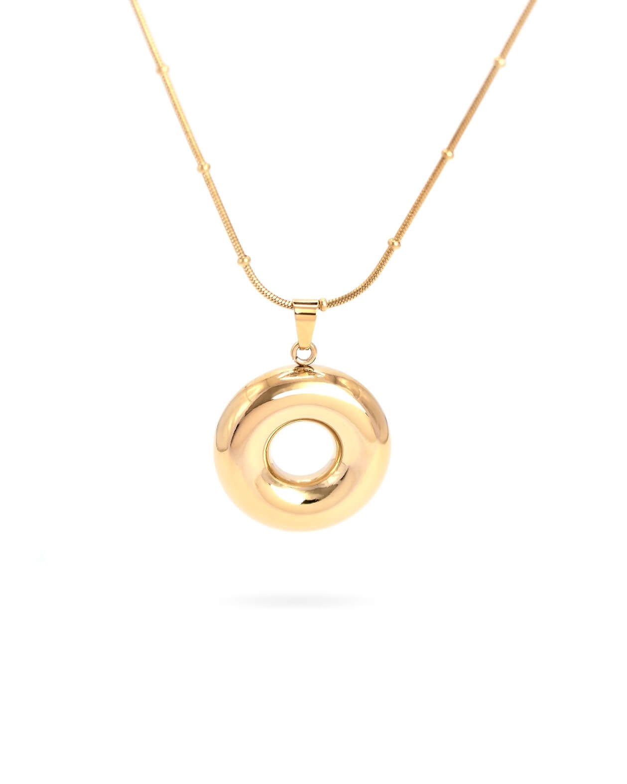Estos diseños jamas pasan de moda y siempre complementan de forma perfecta tu look, dandole el toque perfecto y lleno de estilo. De acero inoxidable con un delicado baño de oro, con garantía de cero corrosión. Su cadena es un delicado lazo con bolitas intercaladas dandole un toque elegante y original.