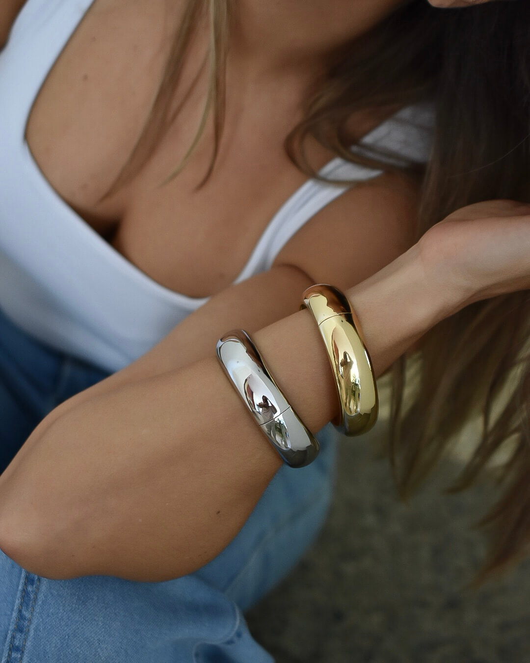 Espectaculares Aros lisos, un diseño totalmente en tendencia, de esos que no fallan ! complementa tu look y prepárate para impactar. Con un delicado baño de oro . Faciles de colocar porque son solo de abrir.