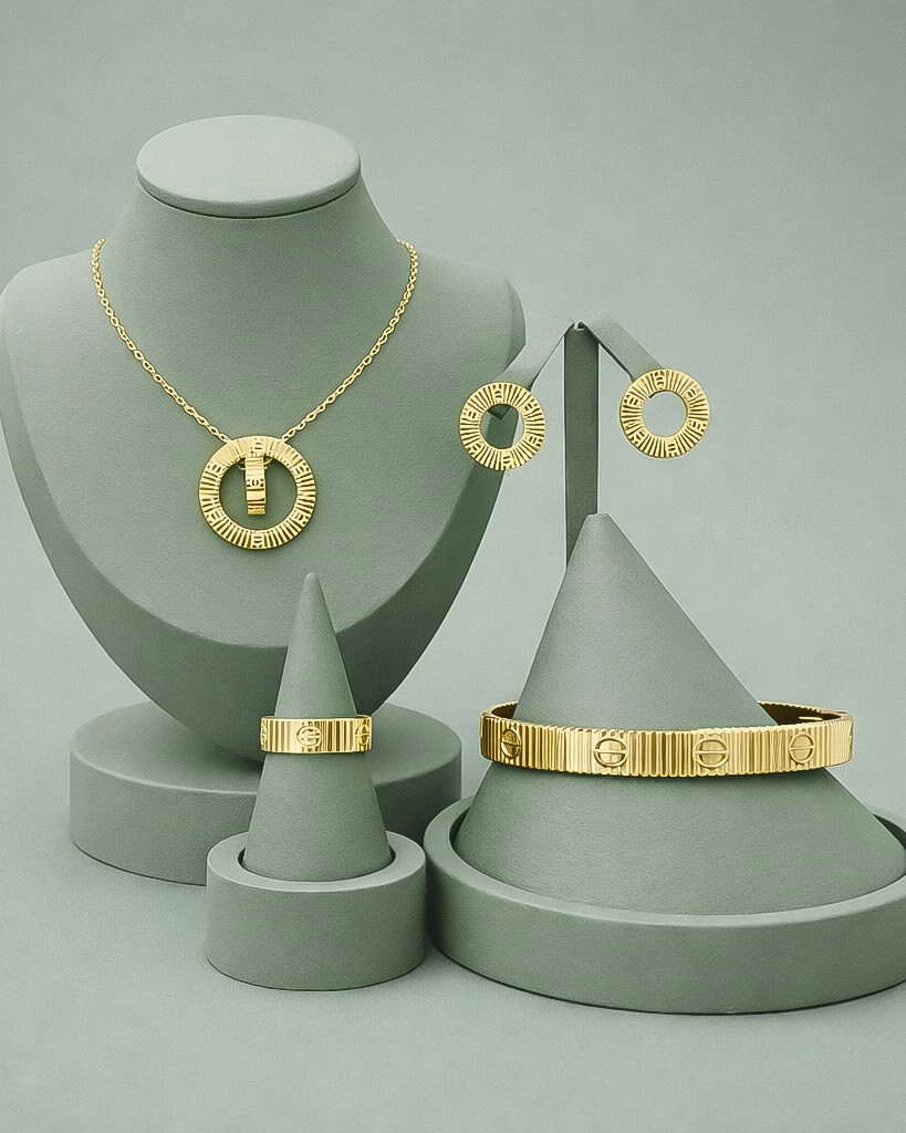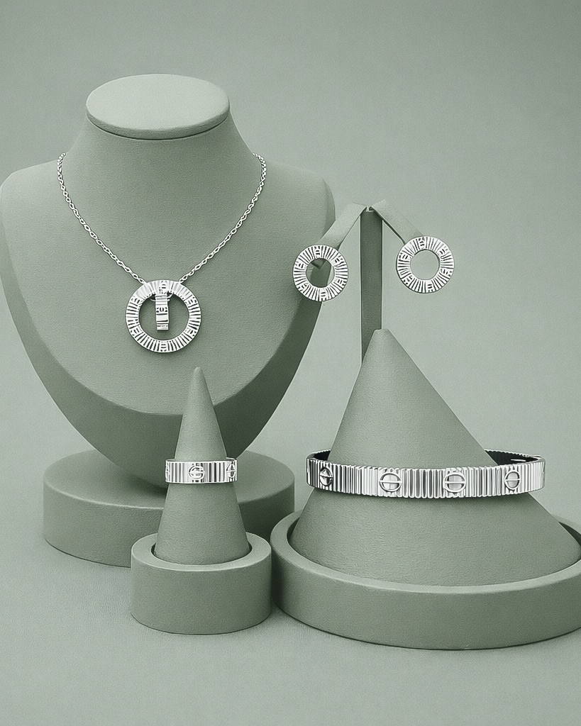 Si amas los diseños internacionales, este set es para ti. De nuestros tops y sabes por que? por su exclusividad y elegancia. Completamente de acero inoxidable con garantía de cero corrosión.