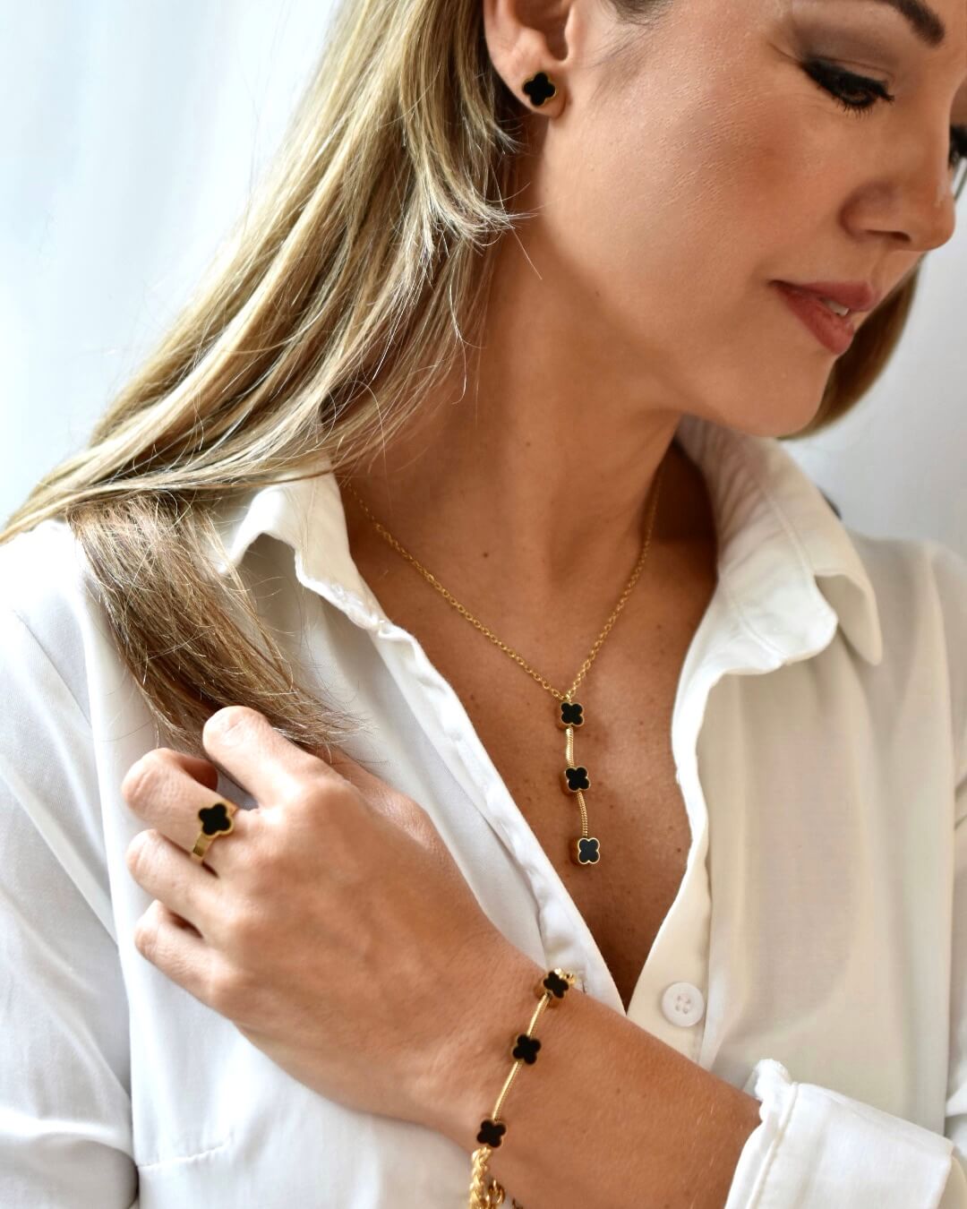 Para que siempre estes combinada, un set completo de marca internacional, es todo un clásico y en tendencia. Set que incluye: Collar, Pulsera, Aretes y Anillo. Completamente de acero inoxidable para que brilles sin problema.
