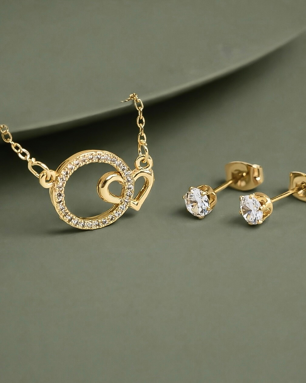 Delicado diseño de acero inoxidable con baño de oro y zirconias. Infinity love. el detalle perfecto para tu look. Te obsequiamos los aretes.
