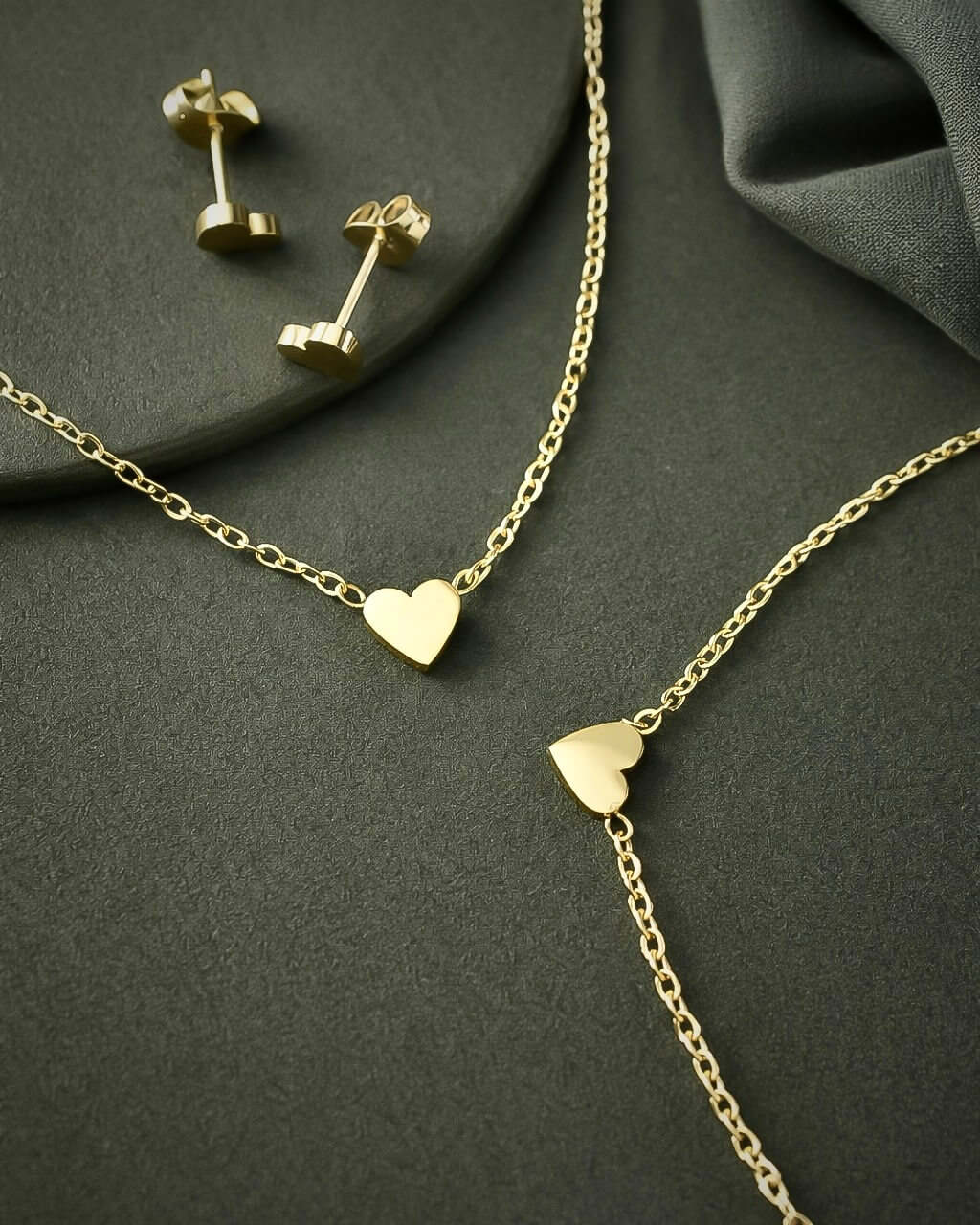 Medidas: Cadena: 41 cms de largo mas 7 cms de extensión Pulsera: 16 cms de largo mas 6 cms de extensión Aretes: 0.5 cms