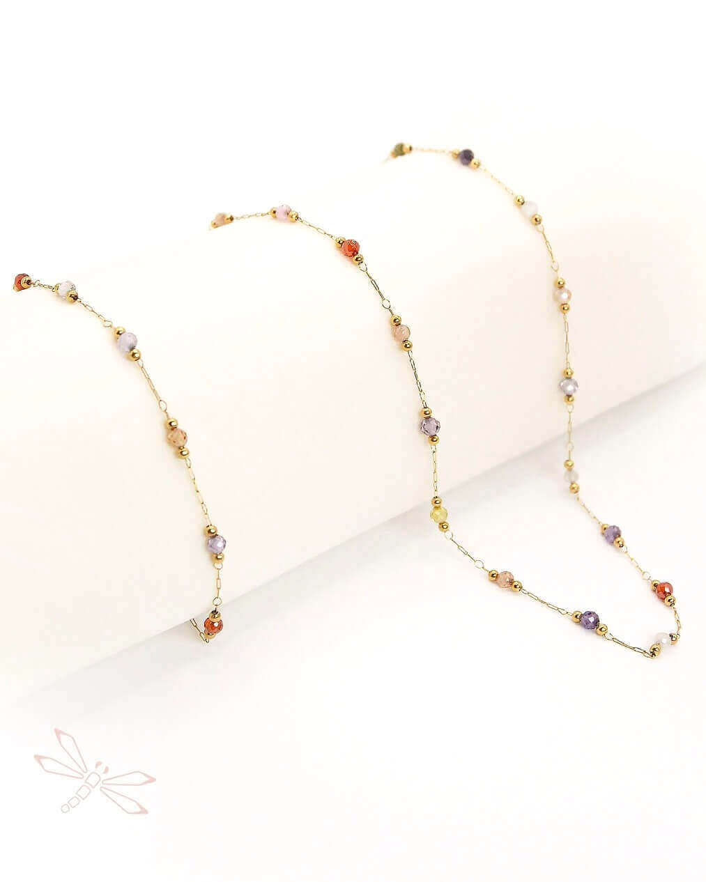 Un delicado set de collar y pulsera de acero inoxidable , lleno de destellos multicolor, un diseño delicado y super chic.